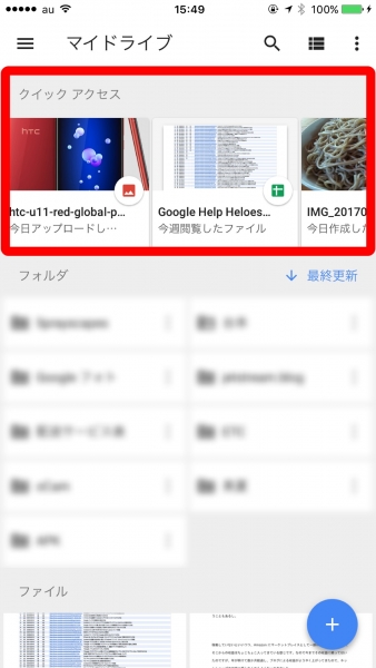 このクイックアクセスは当初、Android 版「Google ドライブ」アプリでサポートが開始され、現在では iOS 版「Google ドライブ」アプリでもサポートされています。