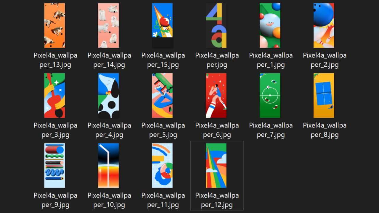 今回流出した「Pixel 4a」用の壁紙は、全 16 枚です。またサイズはすべて 2,340 × 1080 のフル HD+ サイズとなっています。