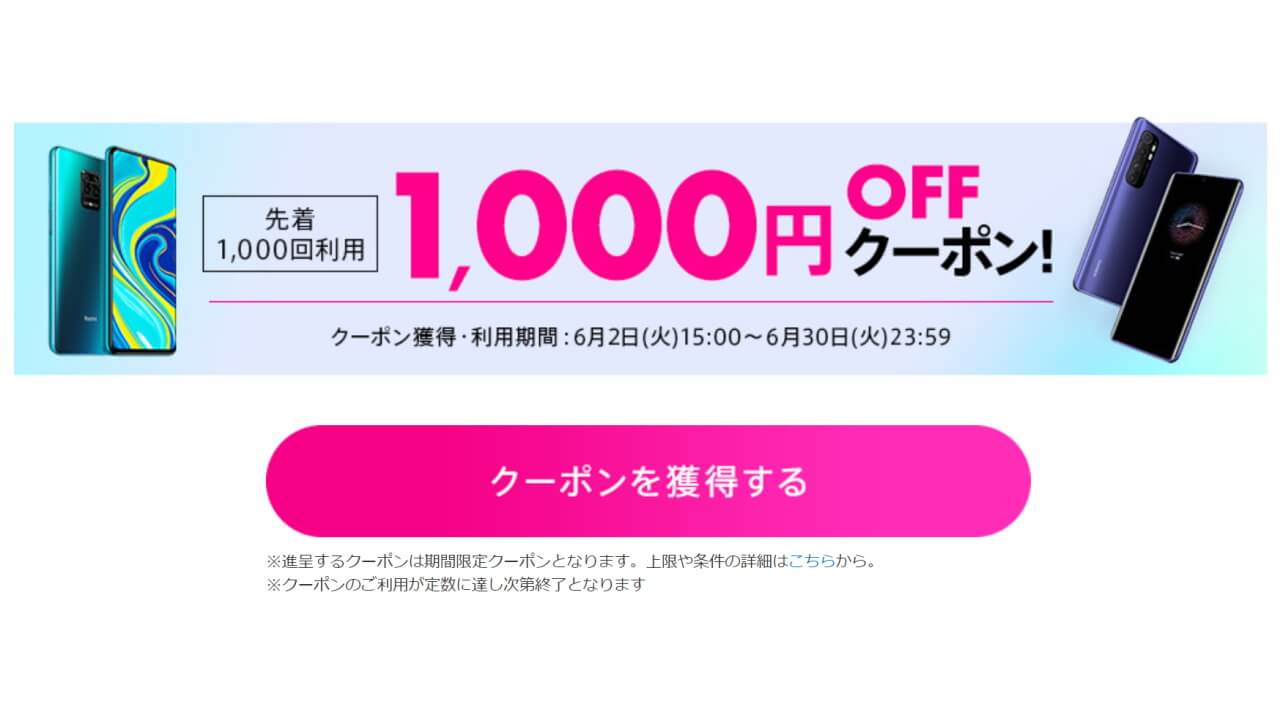 楽天市場において、中国スマートフォンメーカー Xiaomi が 2020 年 6 月 2 日に国内向けとして正式発表した新型スマートフォン「Mi Note 10 Lite」と「Redmi Note 9S」用の 1,000 円引きクーポン配布中です。