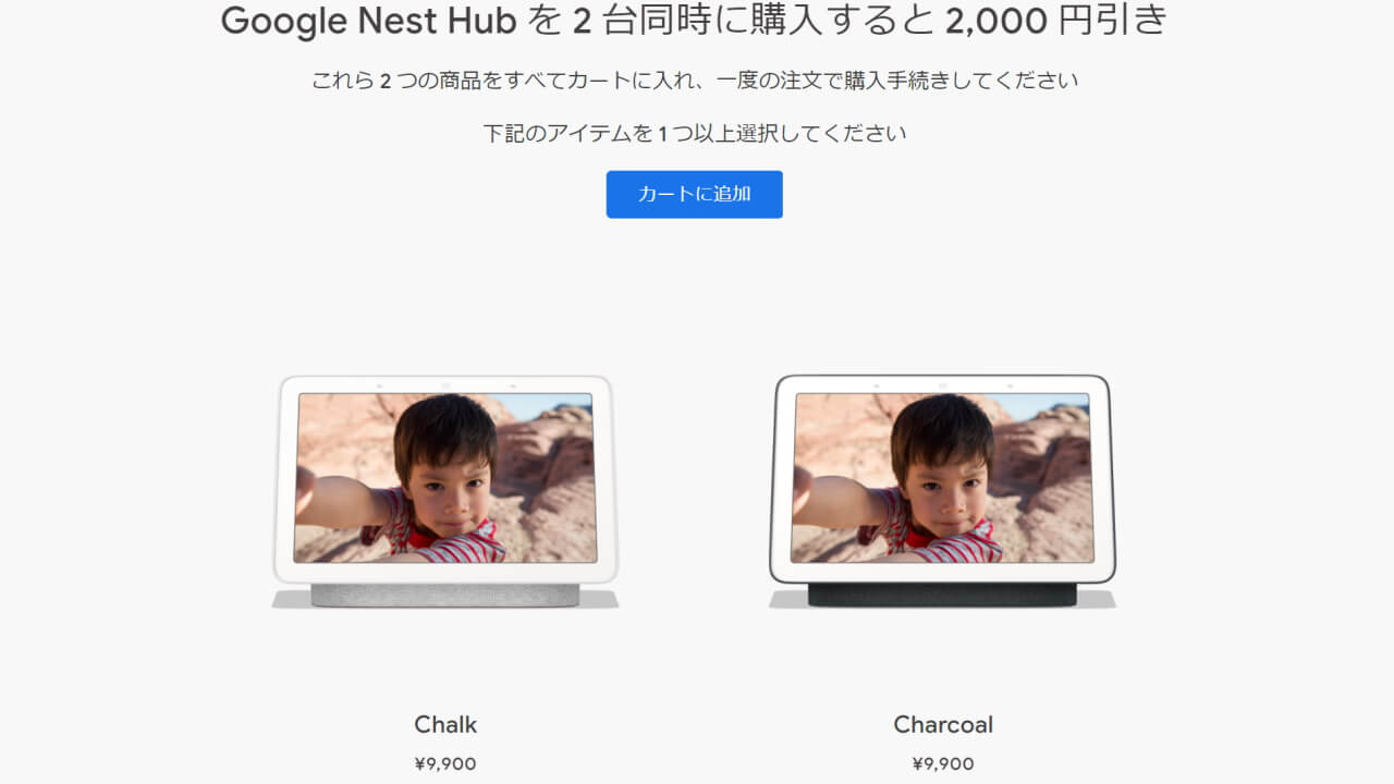 - Google ストア、「Nest Hub」2 台購入で 2,000 円引き