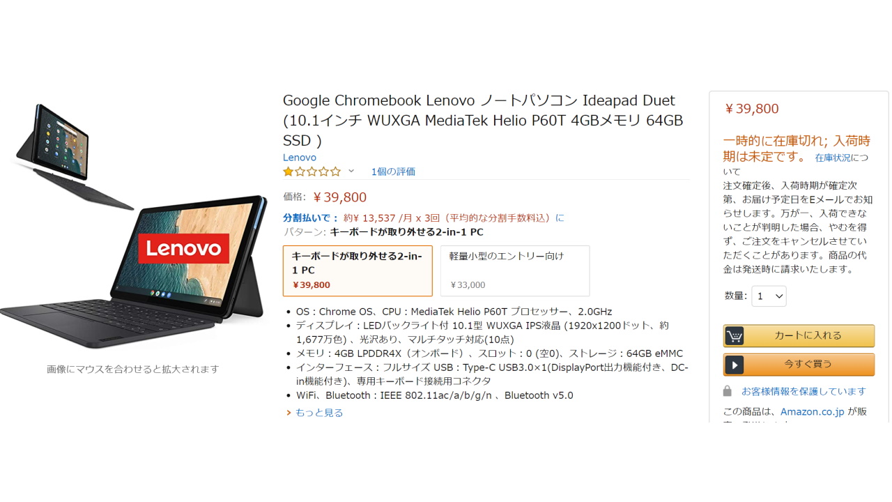 - 国内 Amazon.co.jp、「Lenovo IdeaPad Duet Chromebook」を値下げ