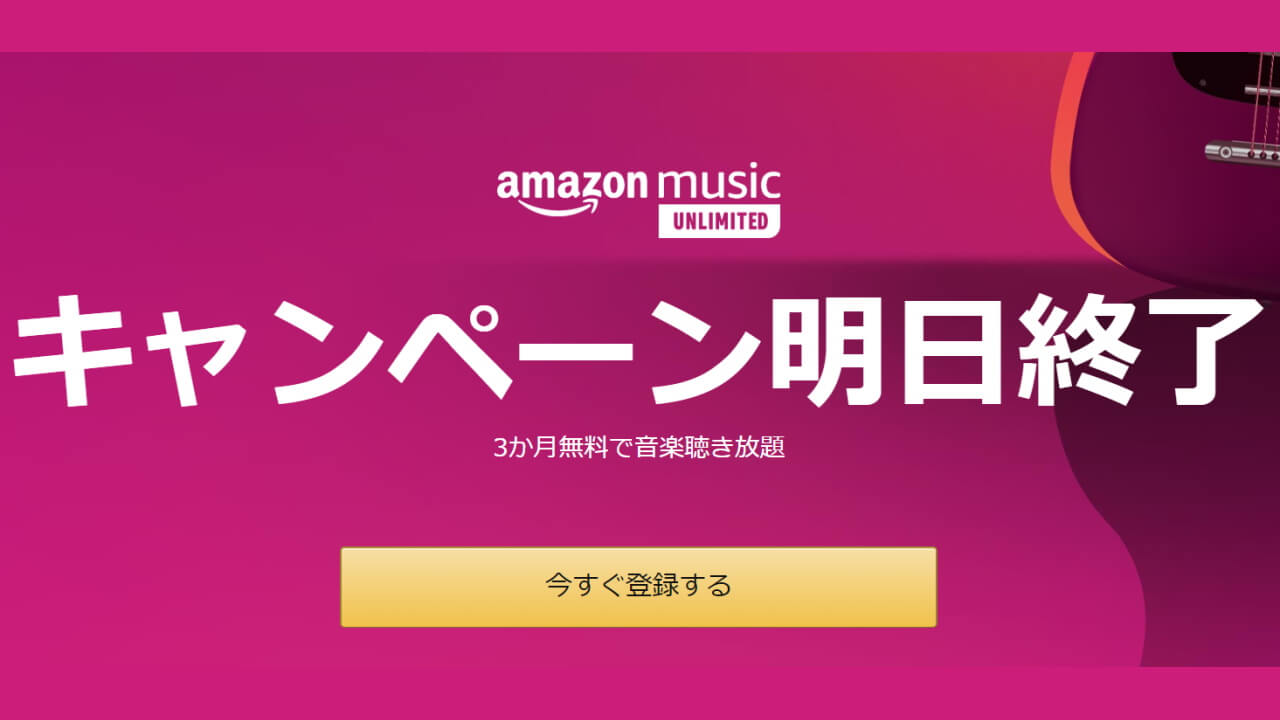 国内 EC サイト大手 Amazon.co.jp で開催されている、楽曲約 6,500 万曲が聴き放題の音楽サブスクリプション「Amazon Music Unlimited」を 3 か月無料でお試し利用できる「3 か月無料で音楽聴き放題キャンペーン」、本日(2020 年 6 月 16 日)終了です。