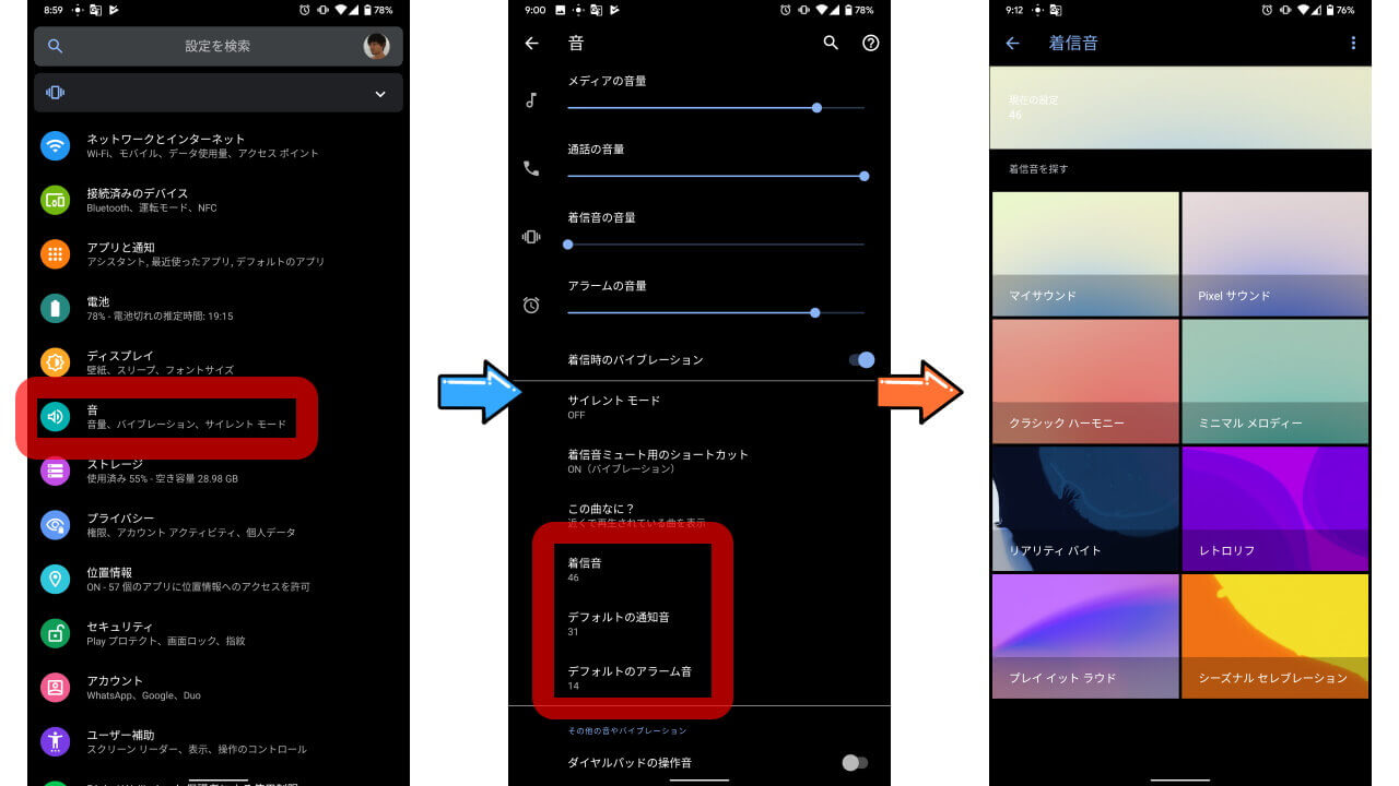 Pixel 4「サウンド」ダークモード&着信音追加サポート