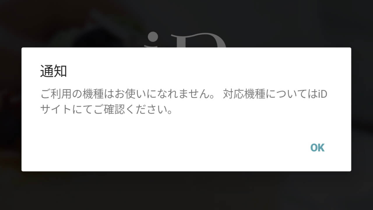 • しかし「iD」アプリは利用できず(決済は可能)