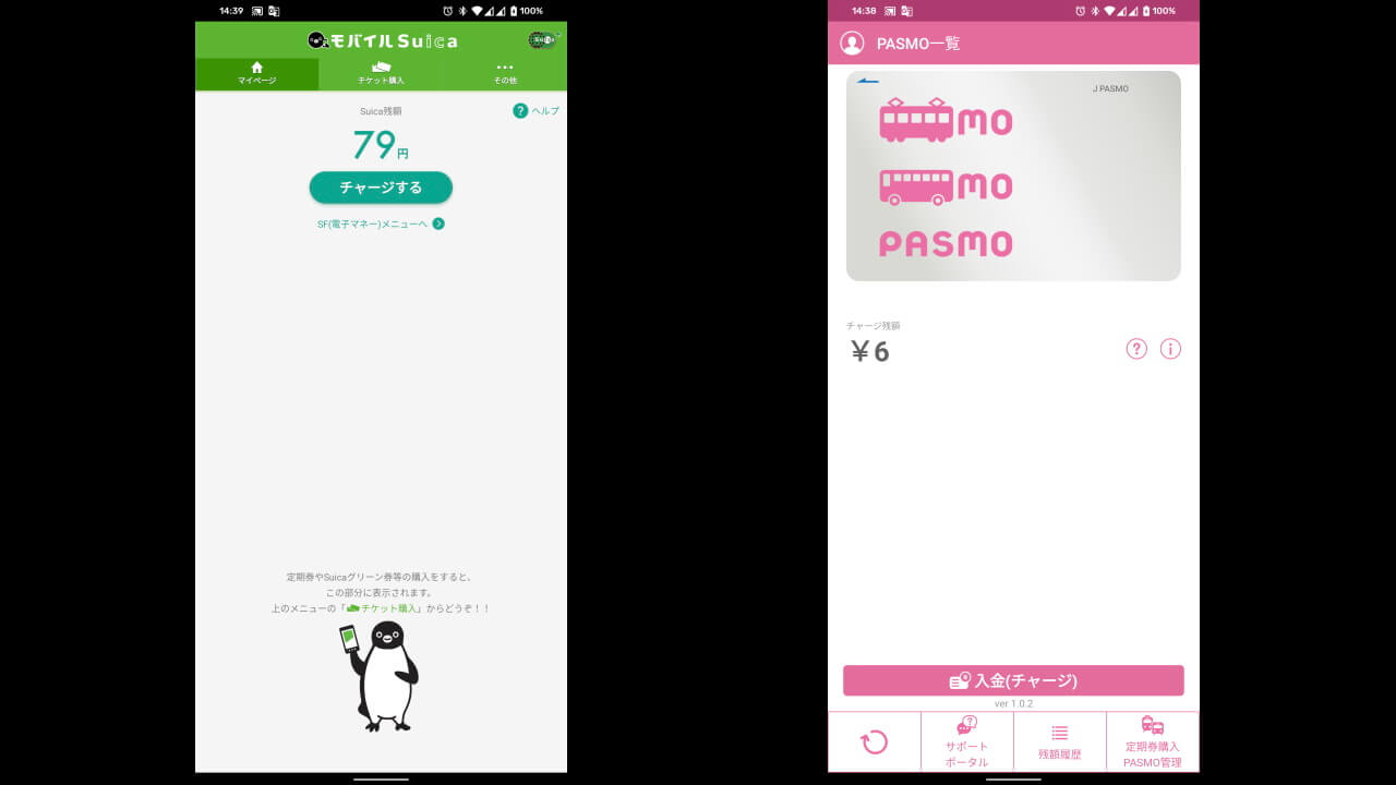• 「モバイル Suica」「モバイル PASMO」は利用可能