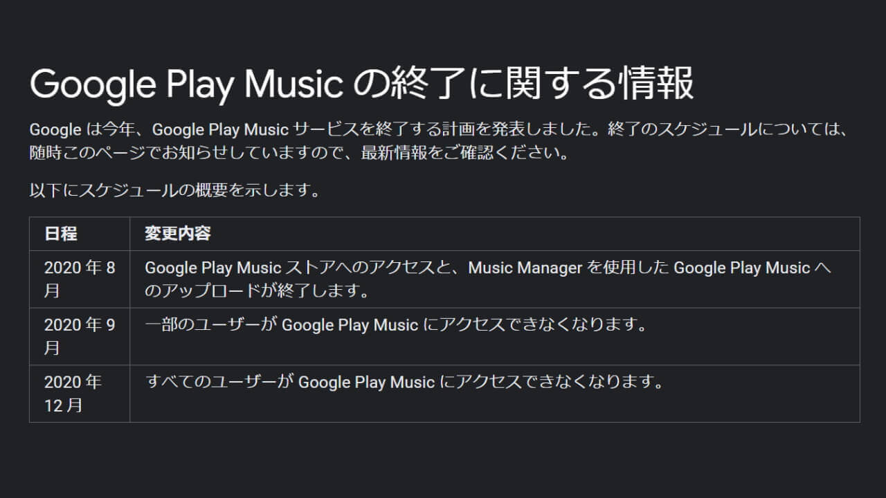 Google は 2020 年 8 月 4 日、すでに 2020 年内での終了と「YouTube Music」への統合を発表している音楽サービス「Google Play Music」の、終了に向けての詳しいロードマップを発表しました。