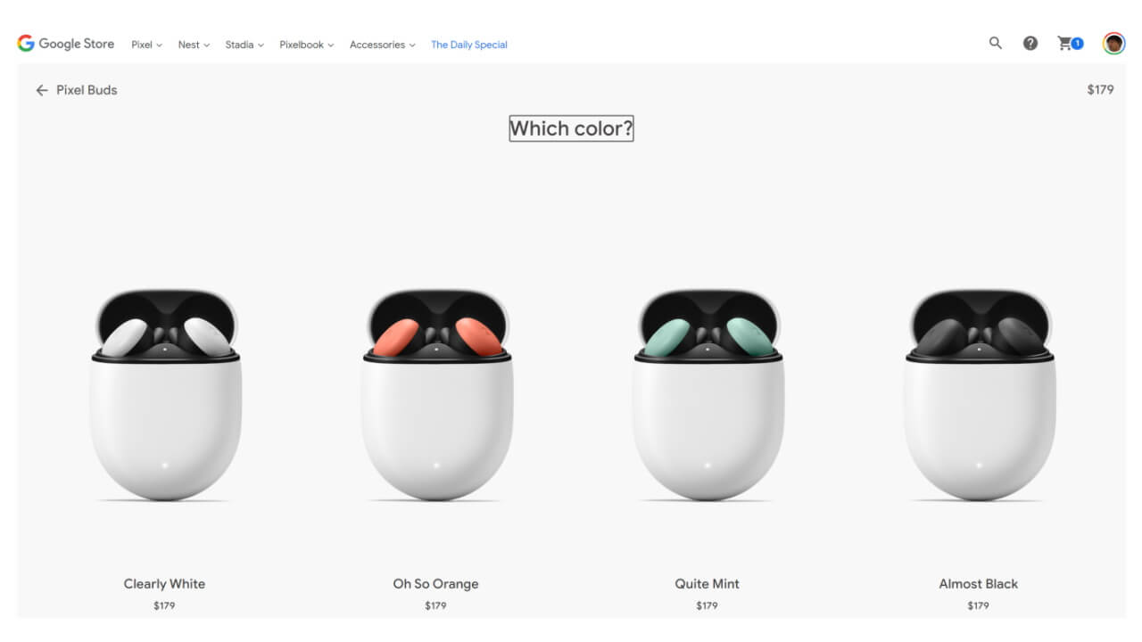 第 2 世代「Pixel Buds」は “Clearly White” “Oh So Orange” “Quite Mint” “Almost Black” の 4 色展開で、米国価格は $179.00、国内価格は 20,800 円です。また日本国内では “Clearly White” “Quite Mint” “Almost Black” の 3 色展開となります。