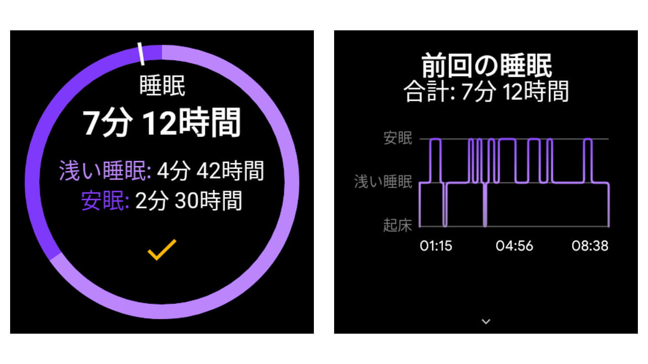 Wear OS ウォッチを装着したまま寝ないといけない、というハードルさえクリアしてしまえば、簡単に利用可能です。寝相が悪い方や腕を額に乗せて寝る方などは、少し注意しなければいけませんね。