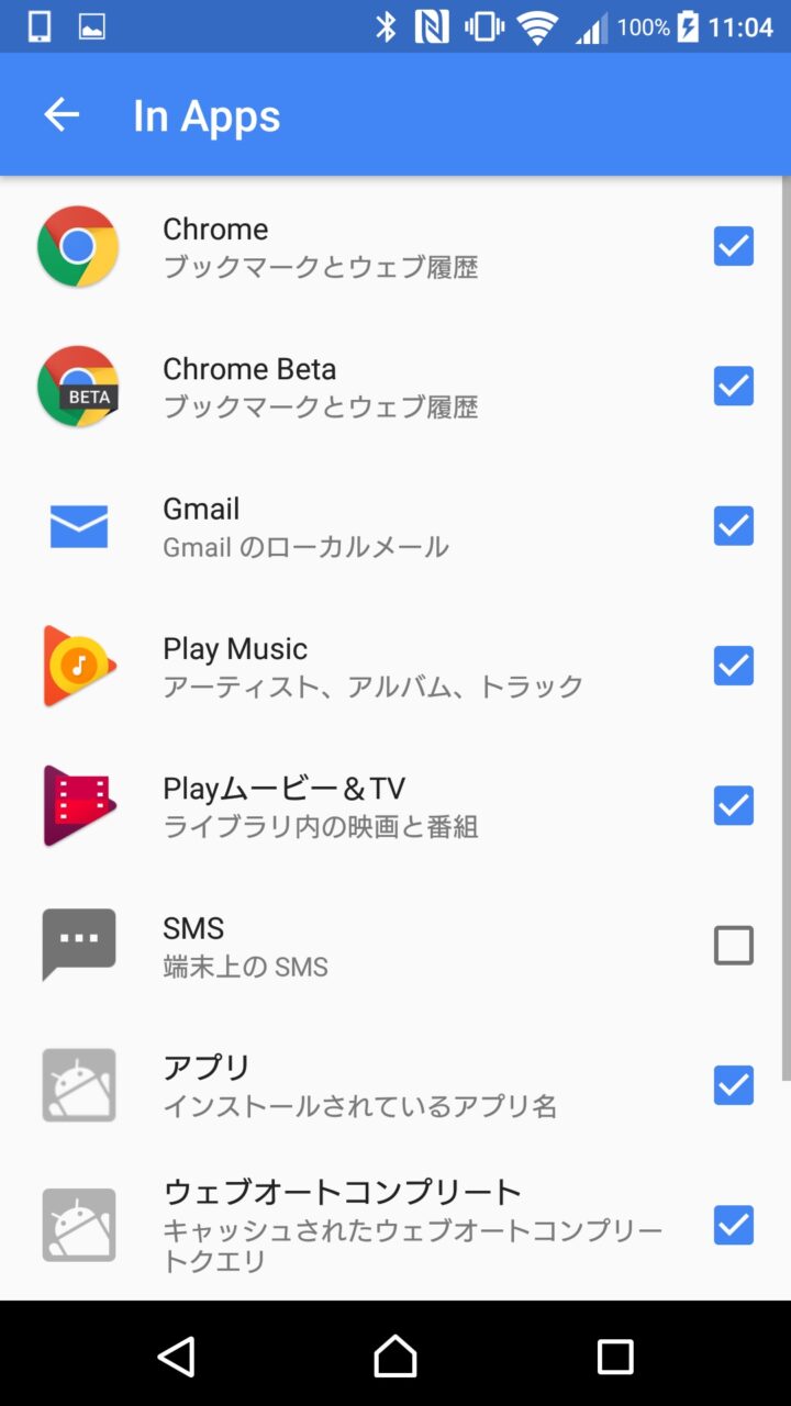 表示したくないアプリの検索結果はチェックを外すことで非表示にすることが可能です。