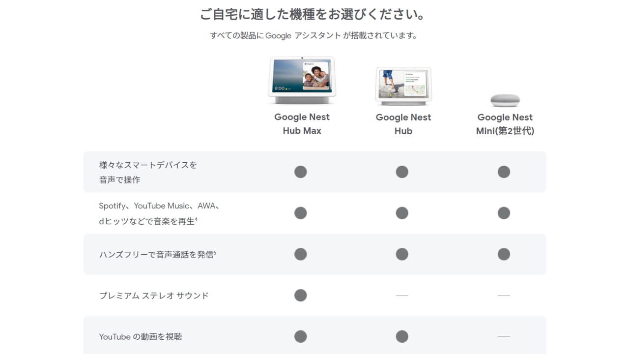 - 「Nest Mini」「Nest Hub」「Nest Hub Max」がラインアップ