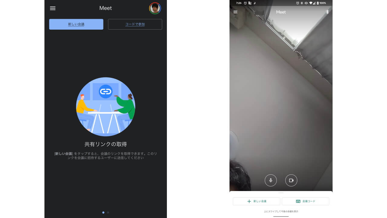新しい「Google Meet」アプリの UI は、7 月ごろより展開が開始された、「Gmail」アプリにおける[Meet(会議)]タブ内の「Google Meet」と同じ仕様です。つまり「Google Meet」アプリの UI が「Gmail」アプリ[Meet(会議)]タブの UI に統一されます。