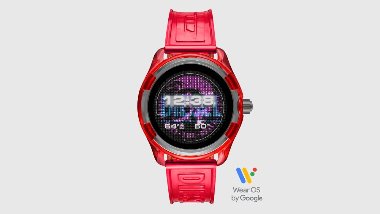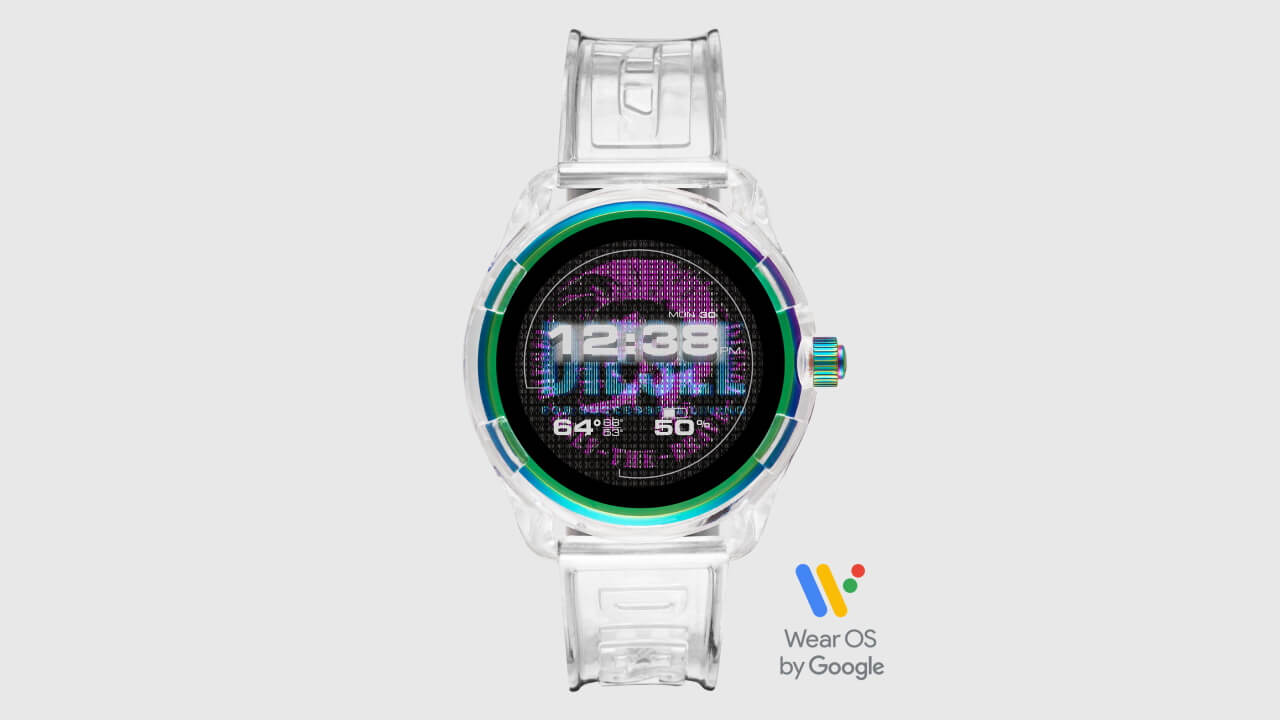 「Diesel On Fadelite」の特徴は、やはりデザイン性の高さです。リストストラップには透明なシリコンストラップを採用し、本体ケースも半透明なナイロンケースを採用。軽量化とデザイン性を兼ね備えた仕様となっています。