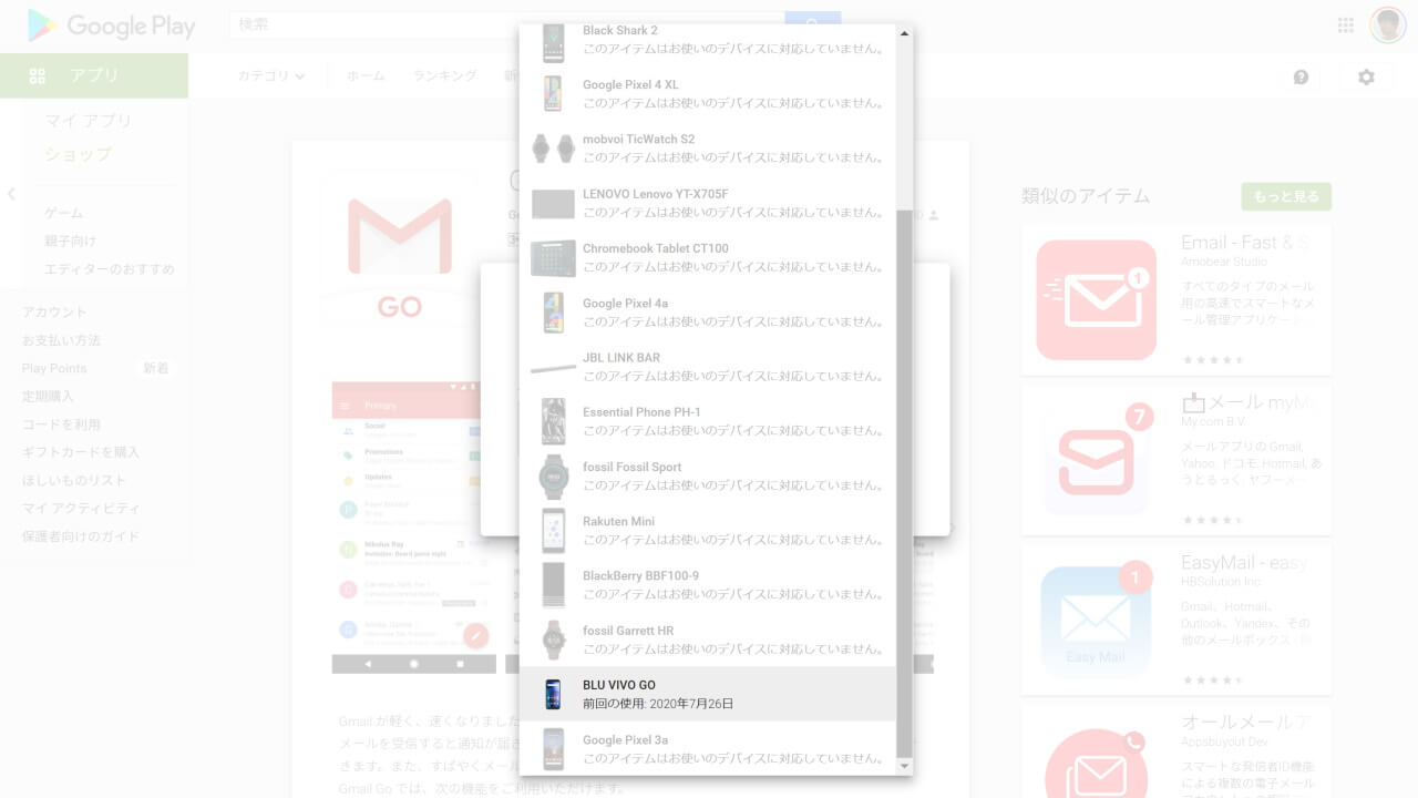 現在は、「Android Go」以外の機種に、Google Play ストアから「Gmail Go」アプリをインストールすることはできなくなっています。