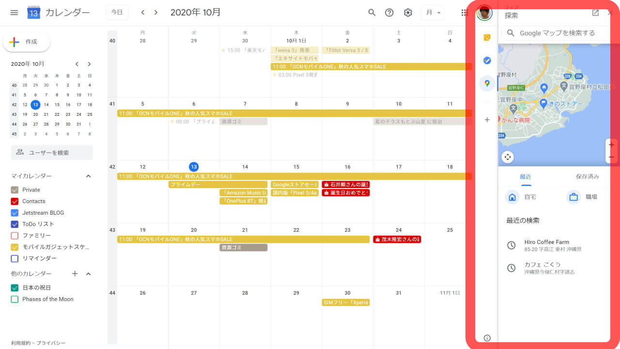 WEB「Google カレンダー」サイドクイックパネルに「Google マップ」が追加