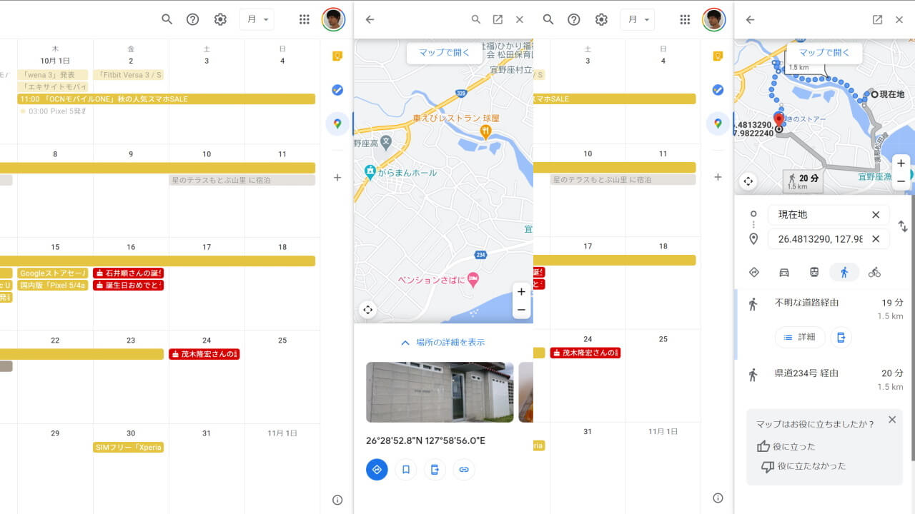 WEB 版「Google カレンダー」の「Google マップ」サイドクイックパネル表示、是非活用しましょう。