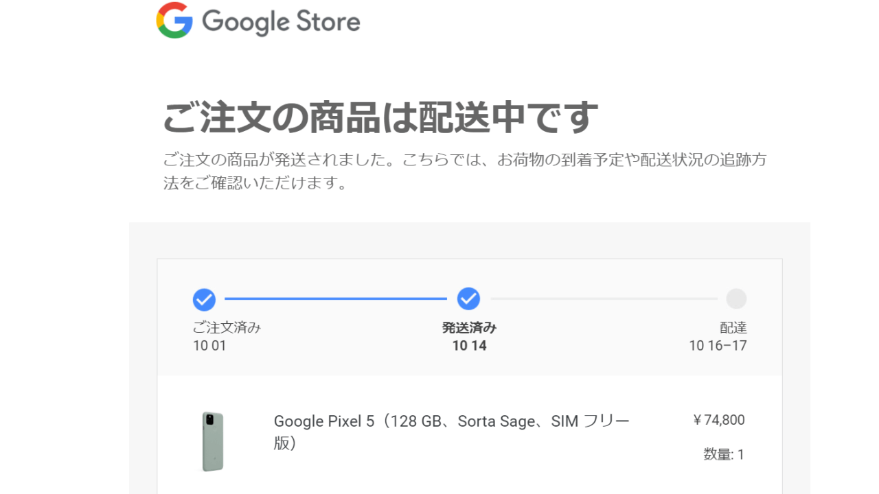 Pixel スマートフォン、今までは発売日同日か発売日を過ぎてから発送が開始されることが多く、苦言も多々見受けられたのですが、国内版「Pixel 5」「Pixel 4a(5G)」はなんと発売日前日の発送開始となりました。おそらく関東圏や関西県などを中心とした地域であれば、「Pixel 5」「Pixel 4a(5G)」発売日の 2020 年 10 月 15 日に到着するのではないでしょか。