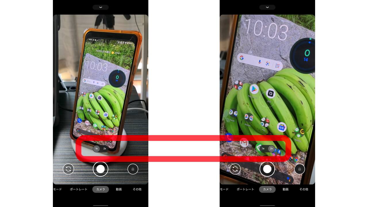 これまでの「Google カメラ」アプリでは、画面をピンチ & ズームでズームして撮影を行うことができます。