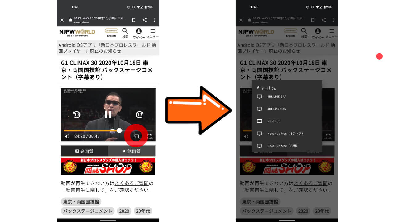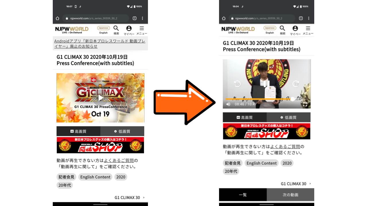 Android「新日本プロレスワールド 動画プレイヤー」廃止→「Chrome」再生に変更