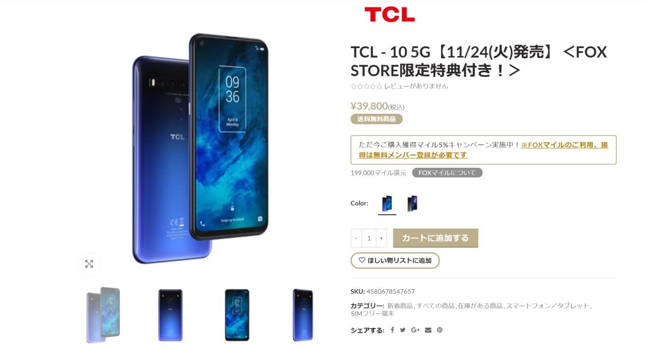 - FOX、次世代通信規格「5G」対応 SIM フリースマートフォン「TCL 10 5G」を国内発売