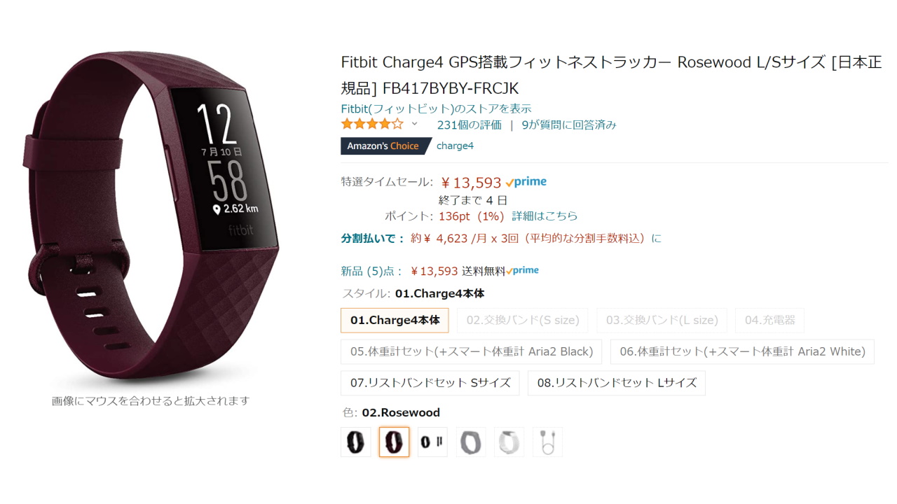 「Fitbit Charge 4」の価格は、元値 22,064 円。「Amazon ブラックフライデー & サイバーマンデー」ではなんと、“ブラック” “ローズウッド” “ストームブルー” の全色 13,593 円となっています。ビックリ価格です。