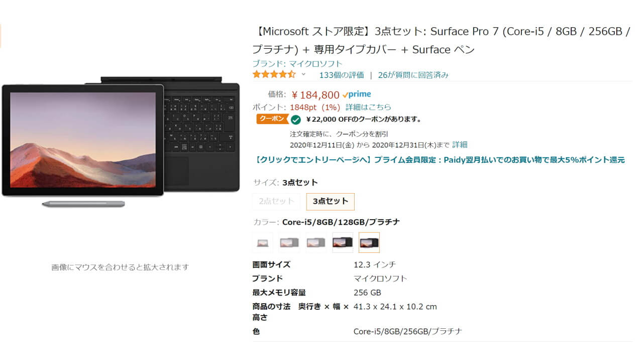 - Core i5 版「Surface Pro 7」3 点セットが特価