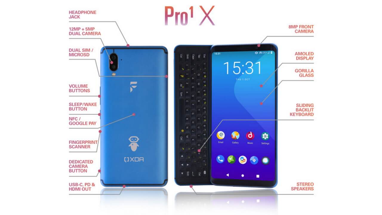 「F(x)tec Pro1 X」はMWC 2019 で発表しその後日本国内で発売されたスライド式 QWERTY キーボード搭載ピュア Android スマートフォン「F(x)tec Pro1」の後継機種で、初代と同様に横型のスライド式の QWERTY キーボードを搭載しています。