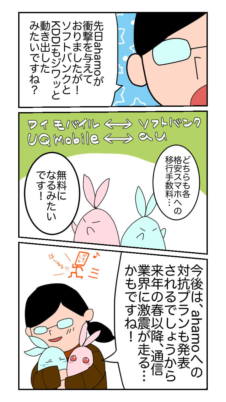 そして KDDI は、au と UQ mobile 間の移行手数料を無料化、ソフトバンクはワイモバイルとの移行手数料を無料化することを発表済み。