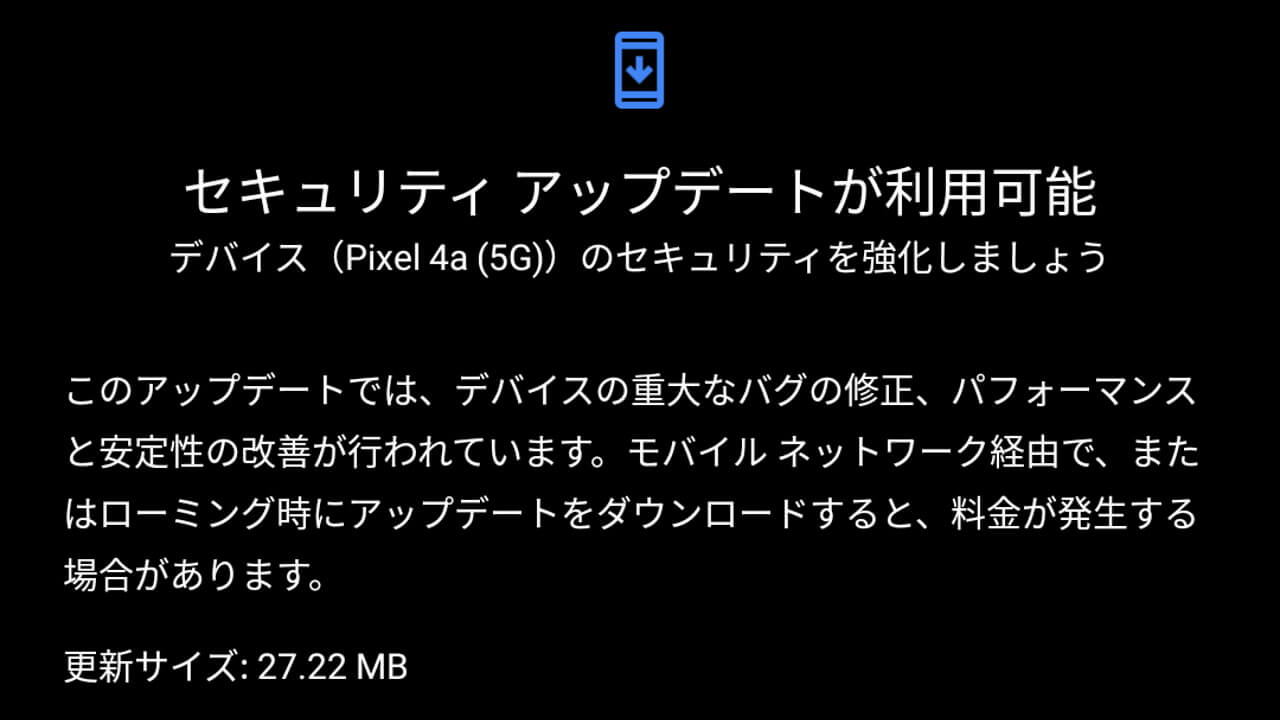 国内版「Pixel 3」「Pixel 3 XL」「Pixel 3a」「Pixel 3a XL」「Pixel 4」「Pixel 4 XL」「Pixel 4a」「Pixel 4a(5G)」「Pixel 5」ユーザーは、今すぐアップデートを行いましょう。