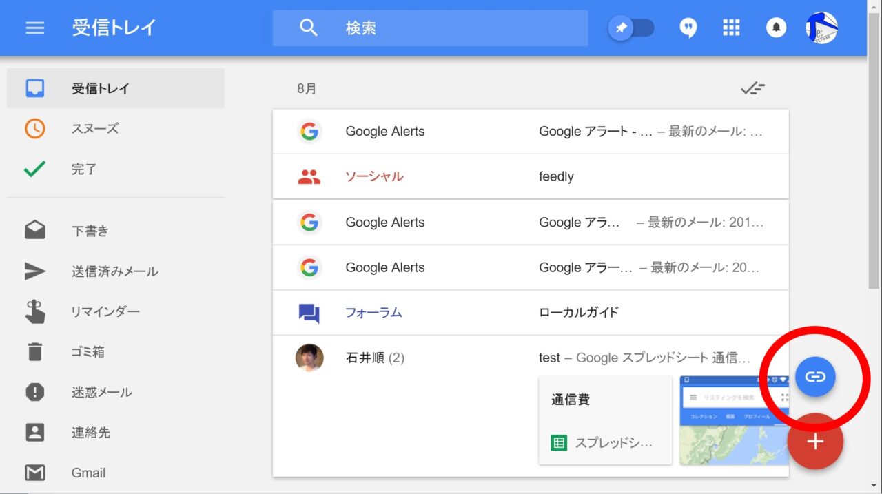 すると、右下の “+” アイコンの上に、クリップアイコンの “リンク” が表示されます。