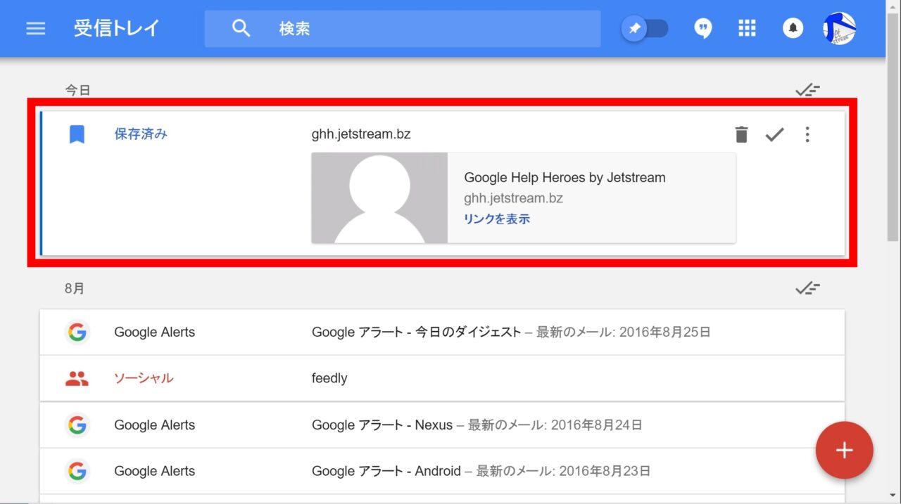 また保存したリンクは受信トレイに保存されますが、メールと同じく “完了” アイコンをクリックすることで、アーカイブ化させることもできます。