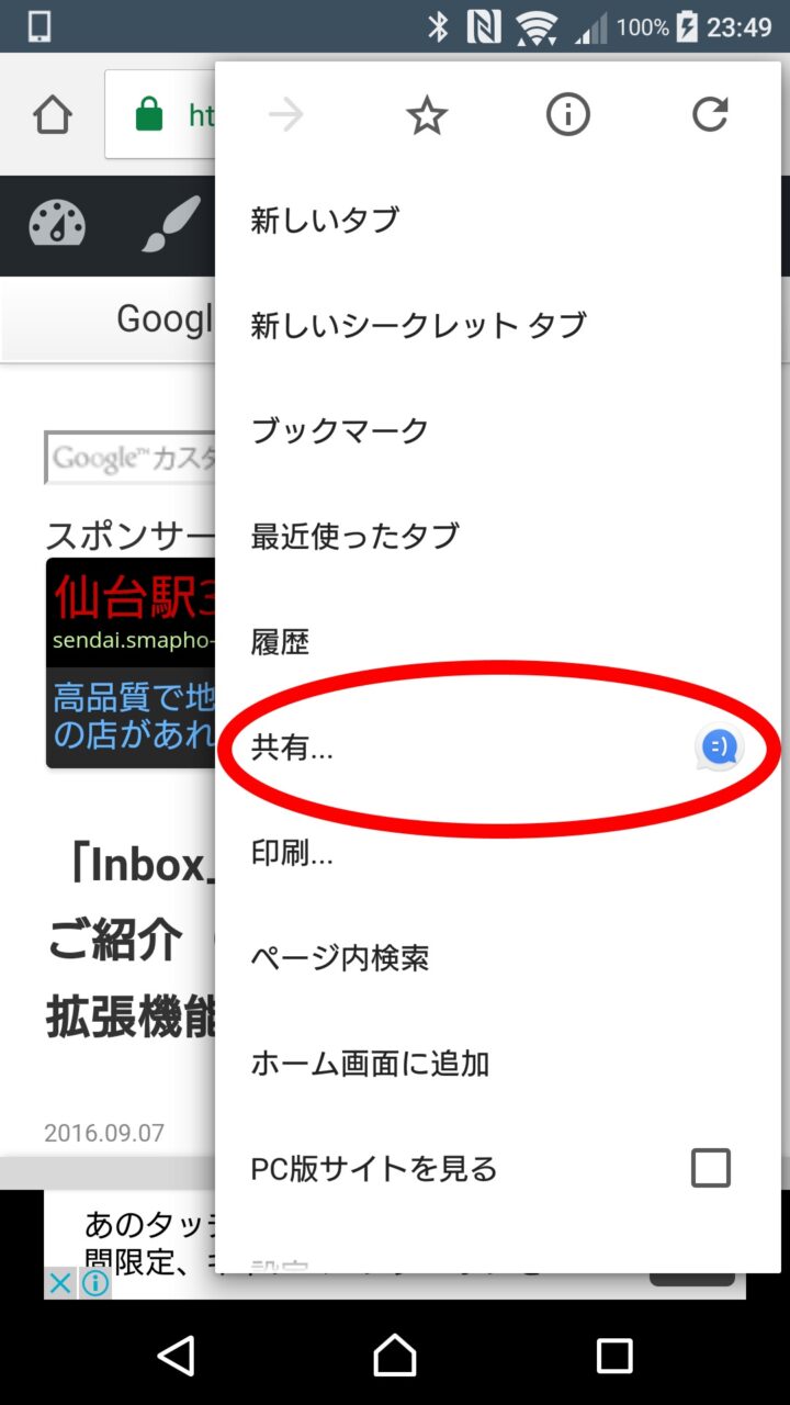 スマートフォン版「Inbox」アプリで “リンク保存” 機能利用する方法は、スマートフォンブラウザやニュースアプリなどで、リンクを保存するページを表示します。