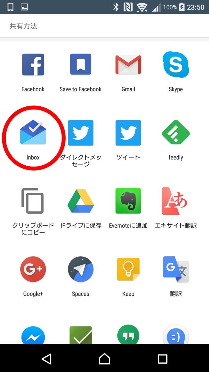 「Inbox」アプリアイコンをタッチして、表示されるウィンドウから “Inbox に保存” をタッチします。これで完了です。