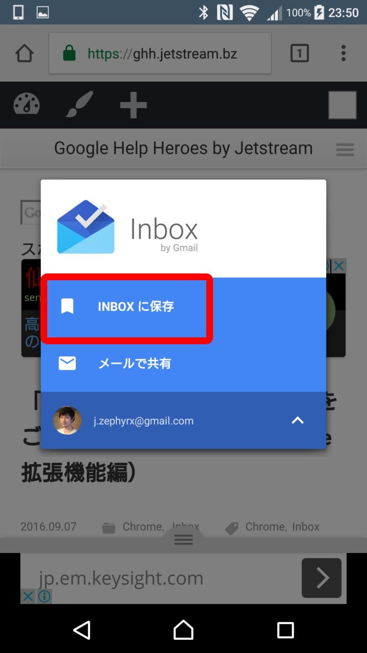 ただし実際の保存方法はスマートフォンならではの仕様となっていて、デスクトップ版「Inbox」での保存方法とは異なります。