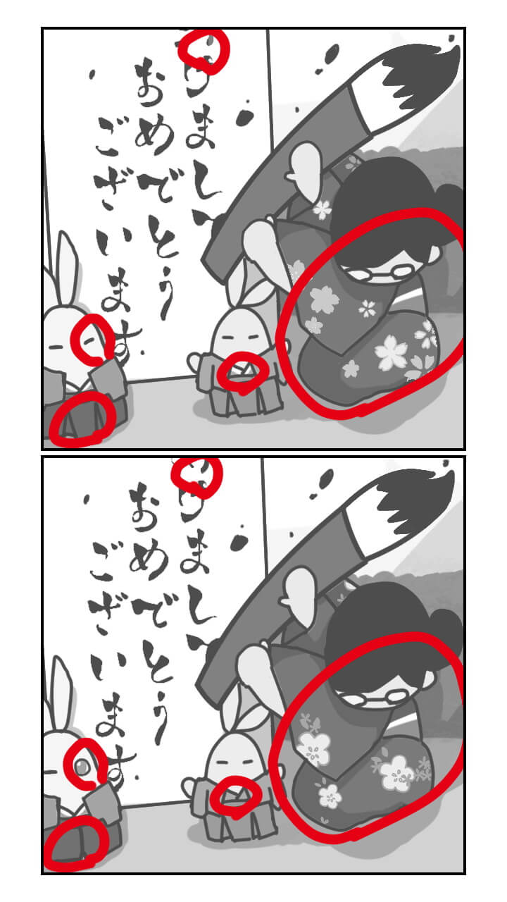 2022 年、新年一発目のアクタジ先生の連載漫画は、間違い探し。間違いは全部で 5 箇所。