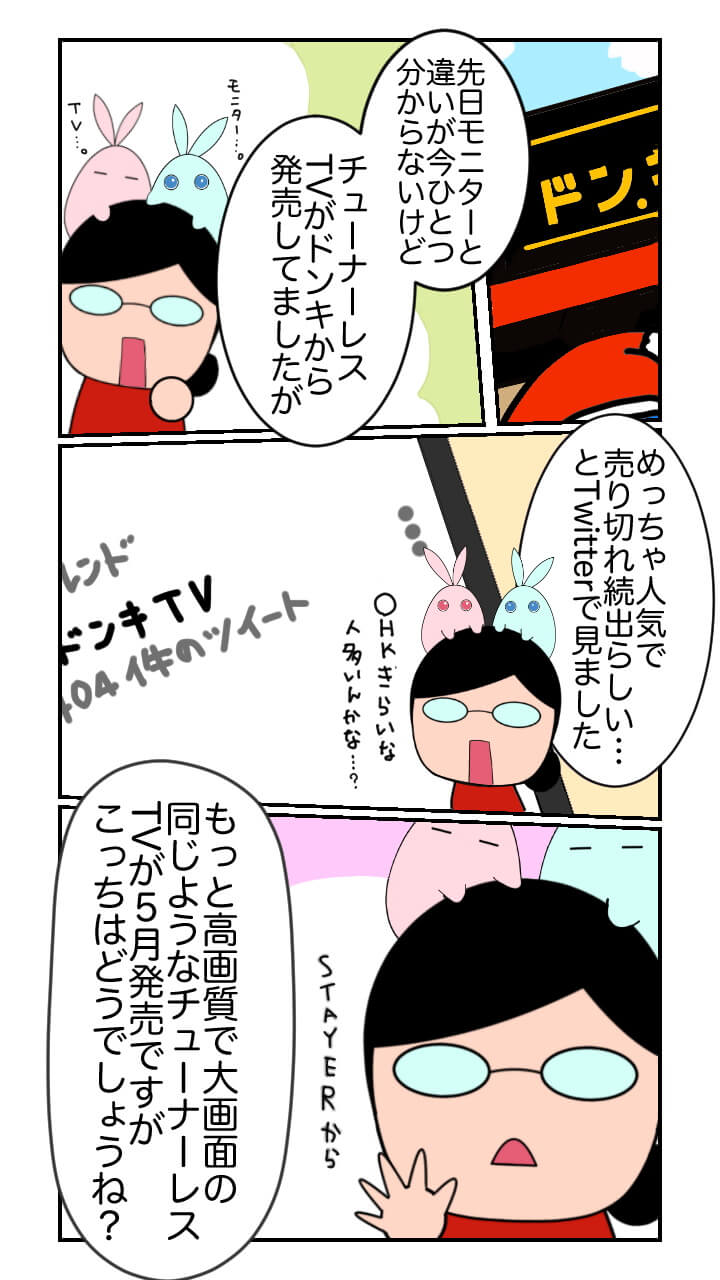 ドン・キの「Android TV 機能搭載チューナーレス スマートテレビ 24 型 / 42 型」、かなり人気みたい。STAYER の「4K 対応 43V 型チューナーレス スマートテレビ」も発売されれば、かなり人気が集中しそうですよね。4K 対応だし。