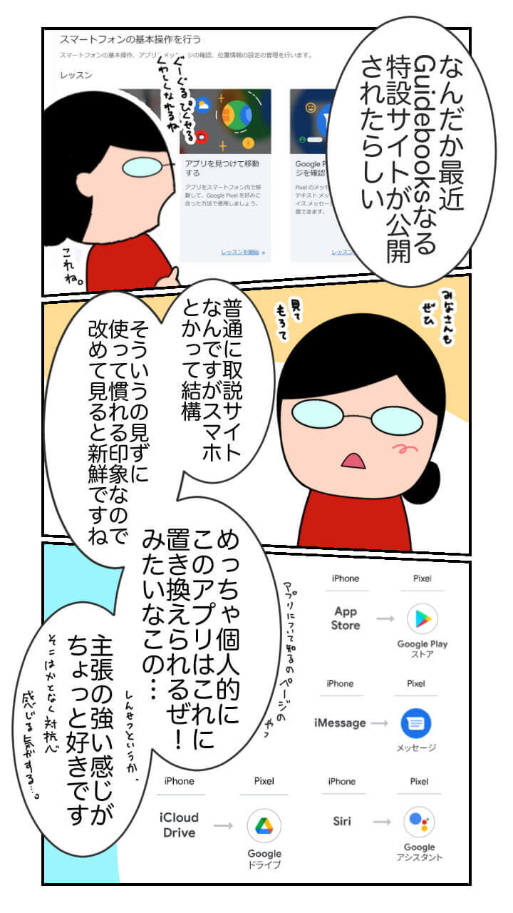 「Guidebooks」特設サイトでは、Google Pixel スマートフォン以外の Android や iPhone からの Google Pixel スマートフォンへの乗り換え方法から、Google Pixel スマートフォンの基本操作などを、様々に学ぶことができる特設サイトとなっています。