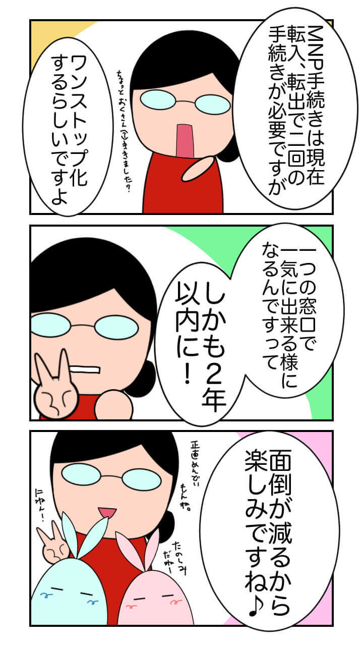 MNP ワンストップ化が実現すると、ユーザーは一つの窓口で MNP 転出転入を一気に行うことができるようになります。なかなか楽しみですね^^