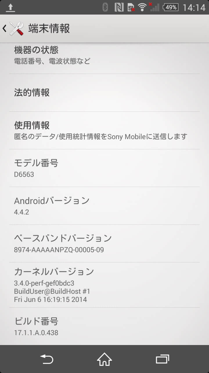 Android 4.4.2で、Xperia Z UltraやXperia Z1 Compactのように4.4.4は配信されていませんでした。
