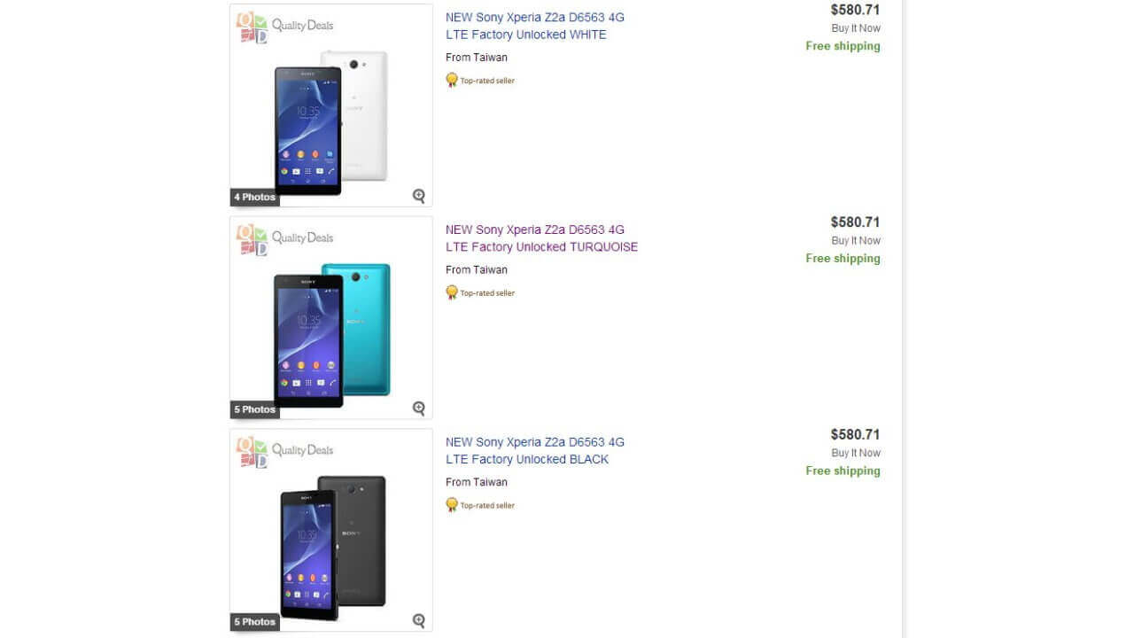 Xperia Z2aは現在台湾でのみしか販売されていないため手配経路が限られておりますが、ebay.comに多数出品されているので比較的容易に入手可能です。