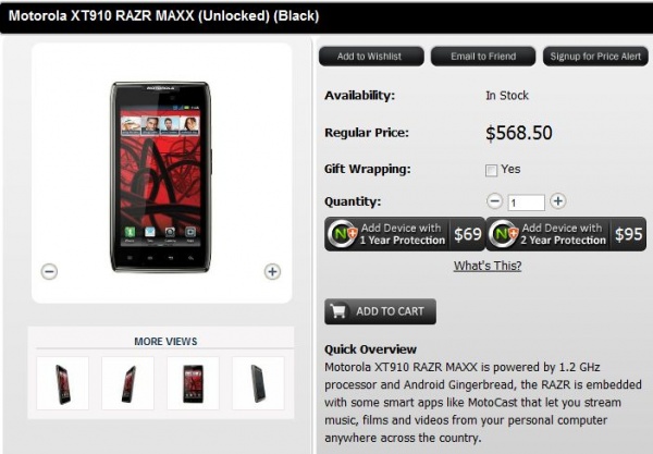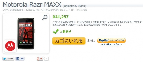 上記画像はとあるSHOPのMotorola RAZR MAXX XT910Mの本日の価格。