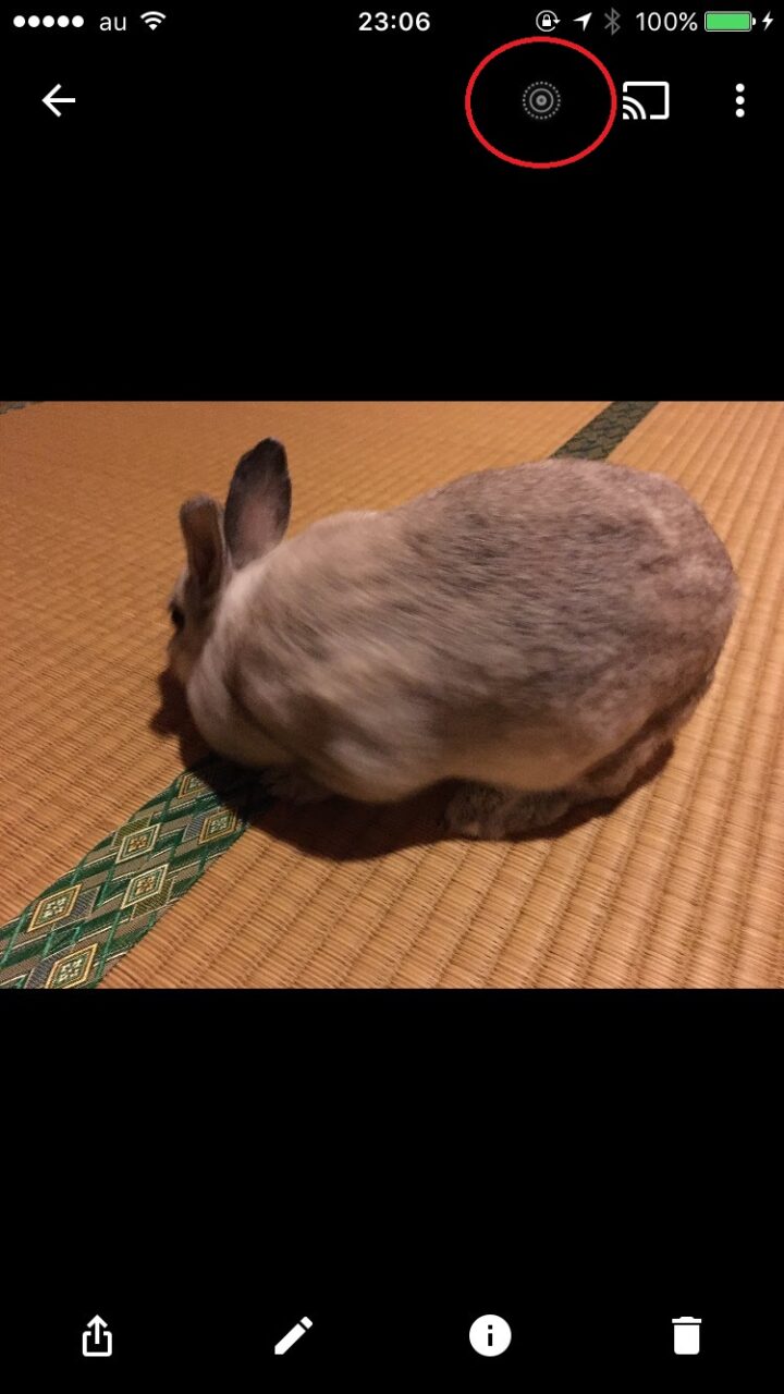 バージョン 1.8.0 以降にアップデートした「Google フォト」アプリで、Live Photos で撮影した写真を表示すると、右上に「Live Photos」のアイコンが現れます。
