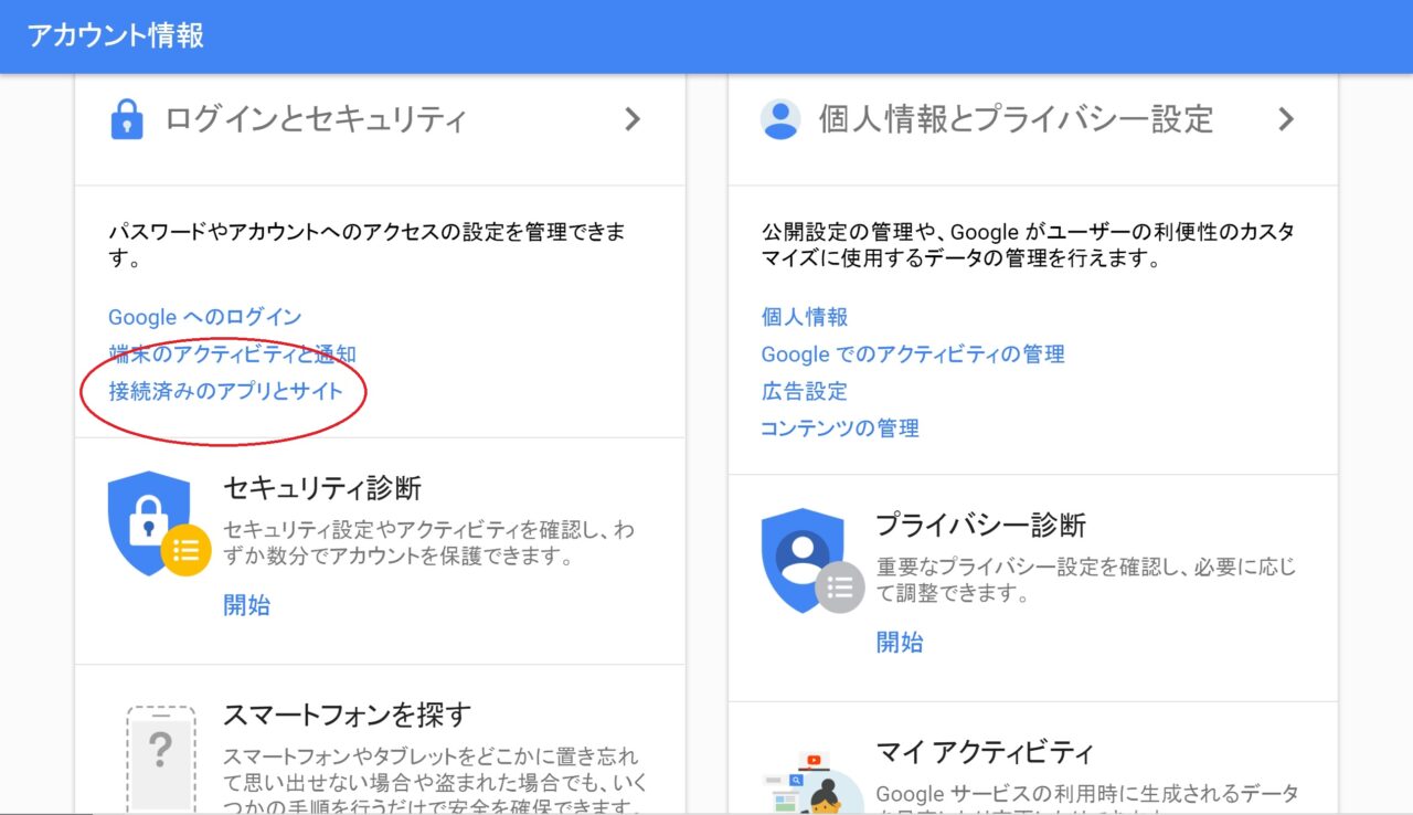 以上、Google アカウントに接続されているアプリや WEB サイトの管理方法のご紹介でした。