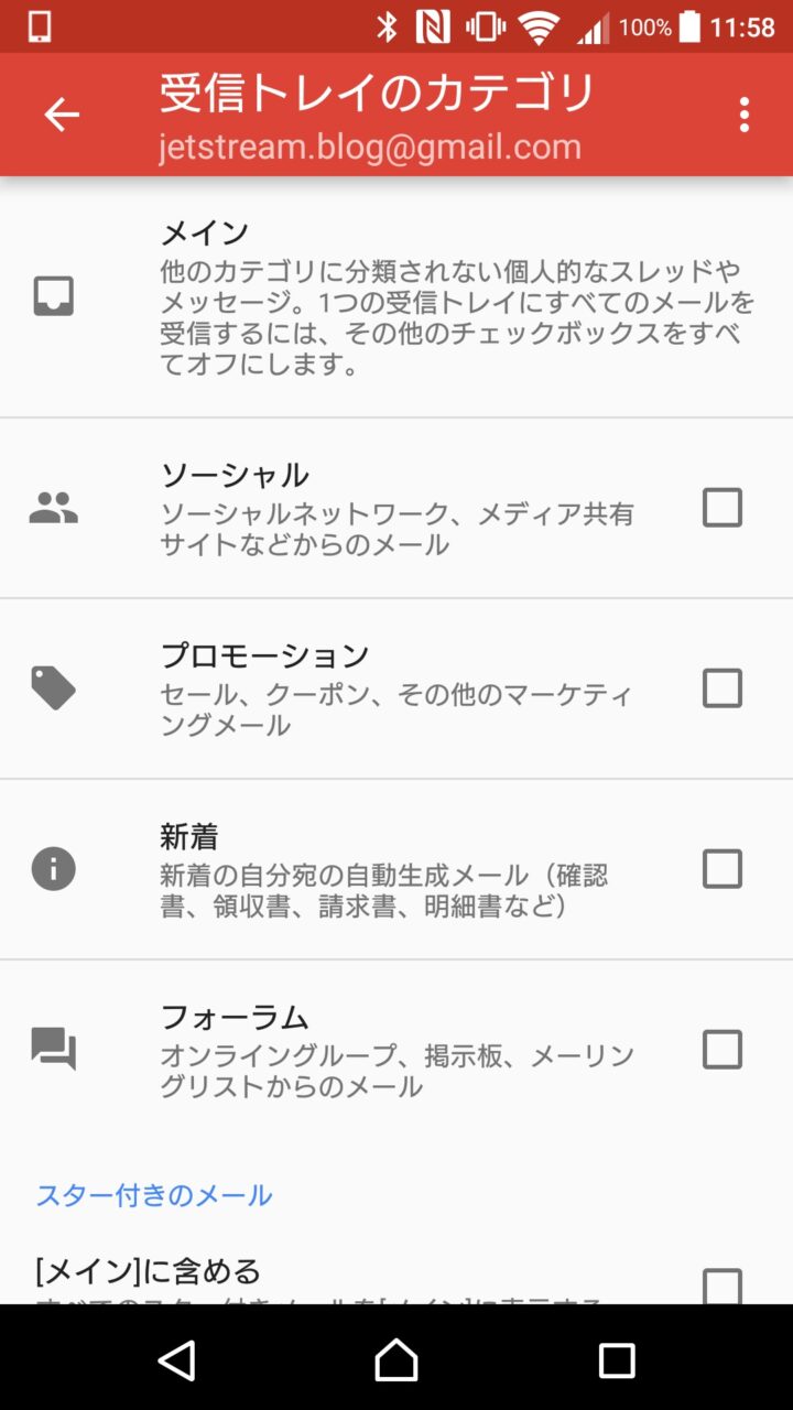またメイン以外のタブを表示する場合、スター付きのメールは必ずメインに表示するようにも設定できます。
