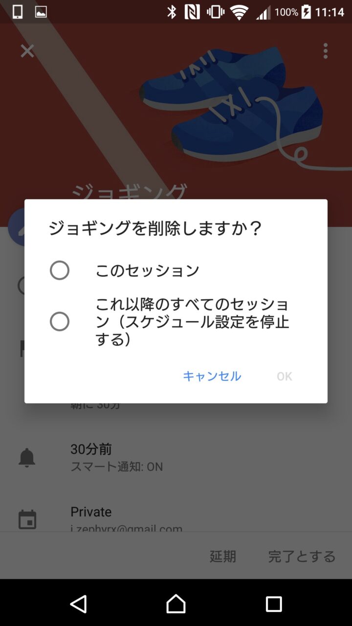 削除は、開いたアクティビティのみを削除する “このセッション” か、その日以降のアクティビティを全て削除する “これ以降のセッション” を選択して行うことができます。
