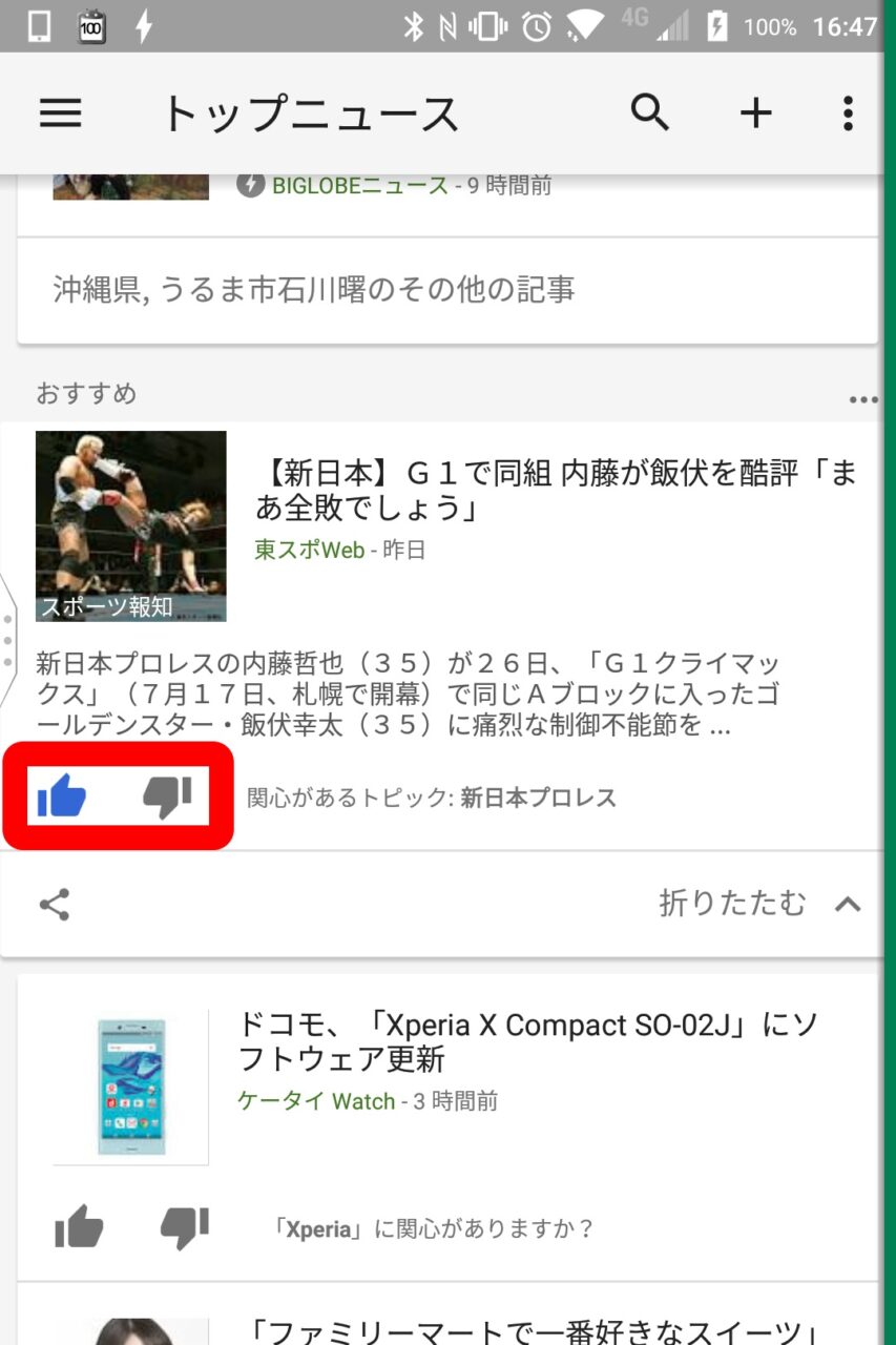 “おすすめ” で表示されるニュース記事に対する関心のマーク付けは、表示されるグッドアイコンかバッドアイコンをタッチするだけなので簡単です。