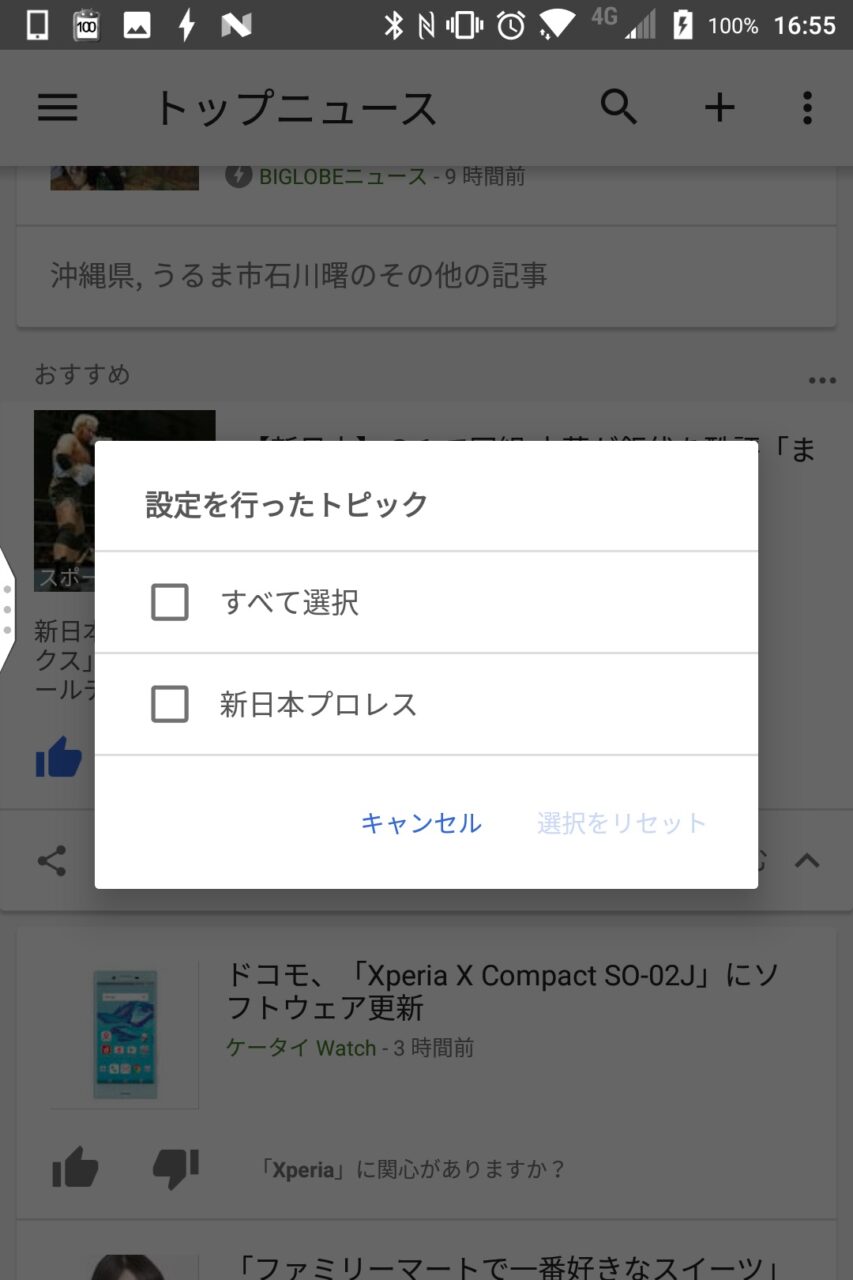 このほか “おすすめ” の右端に表示されるメニューアイコンから “興味や関心を管理” をタッチすることで、これまで関心のマーク付けを行ったトピックをリセットすることもできます。