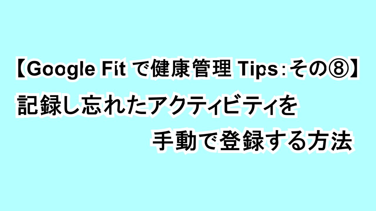 今回は、Google のフィットネスサービス「Google Fit」で健康管理をするための【Tips:その⑧】記録し忘れたアクティビティを手動で登録する方法をご紹介させていただきます。
