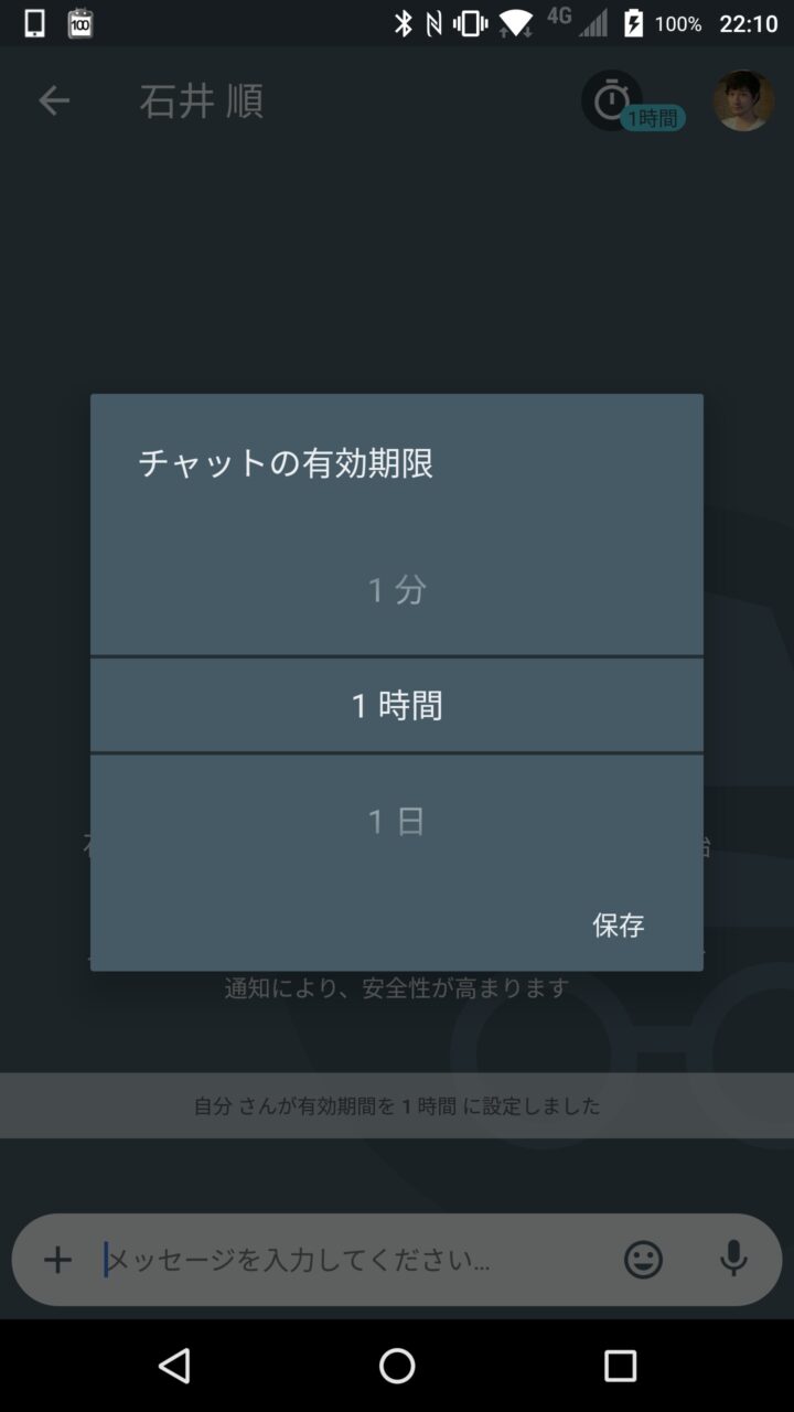 またメッセージの回覧期限設定では、メッセージ送信前に 5 秒、10 秒、30 秒、1 分、1 時間、1 日、1 週間から選ぶことで、メッセージを送信した後に指定した時間が経過するとそのメッセージの送信履歴が自動で削除されます。受信側はメッセージを確認した時点から指定された時間が経過すると受信したメッセージが削除されます。