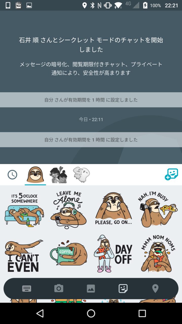 “シークレット モード” でのメッセージのやり取りは通常モードと同じくテキストや画像、動画、ステッカーなどを送受信することが可能です。またメッセージ毎に回覧期限を設定することもできます。