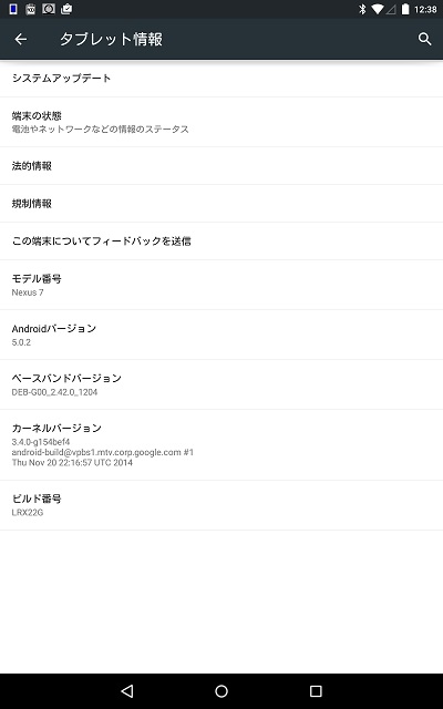 「Nexus 7(2013)」Wi-Fi モデルに配信されていますが、「Nexus 7(2013)」LTE 対応モデルにも本日Android 5.0.2 が降ってきました。